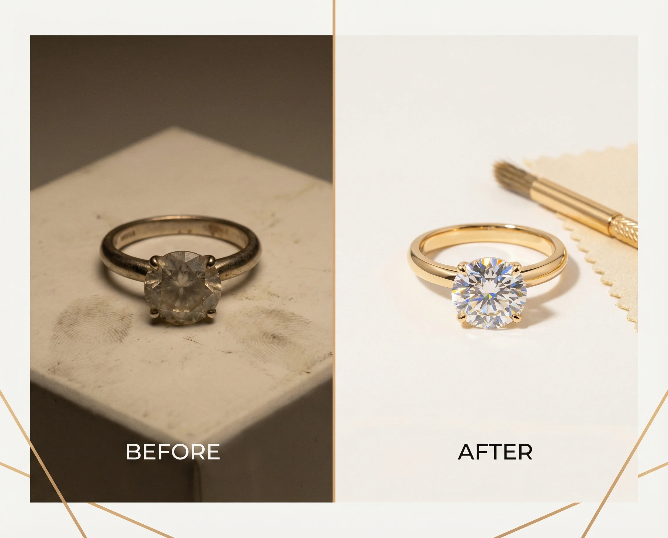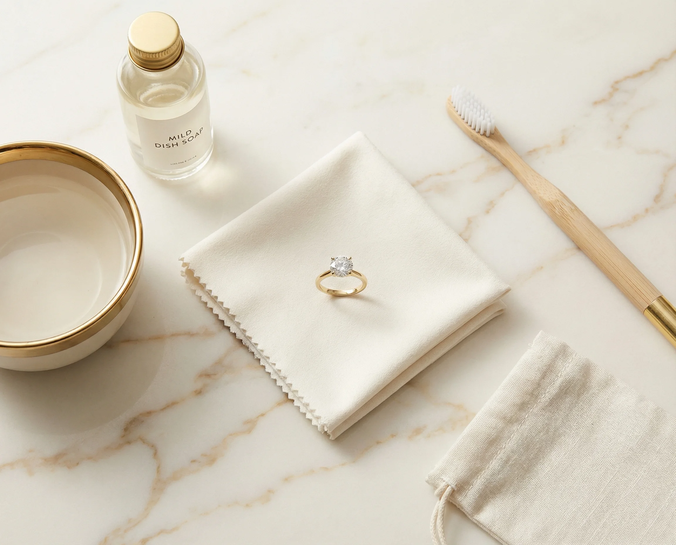 This simple routine restores full brilliance in minutes. We recommend weekly cleaning for rings worn daily.