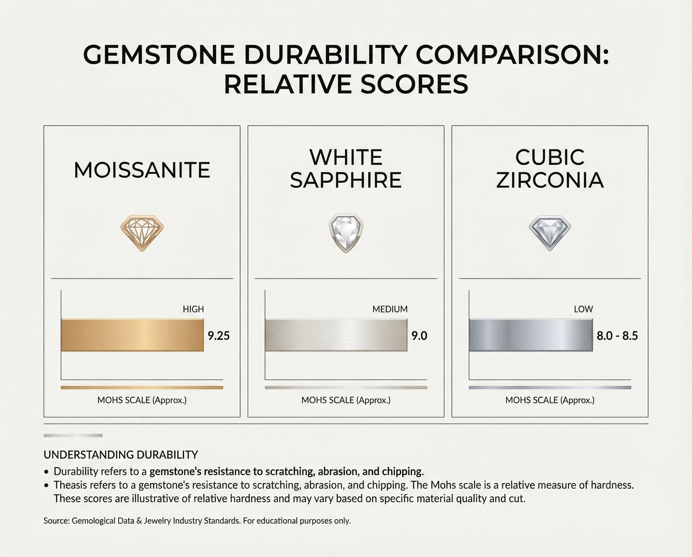 To put this in perspective, here's how moissanite's durability compares to other popular stones: