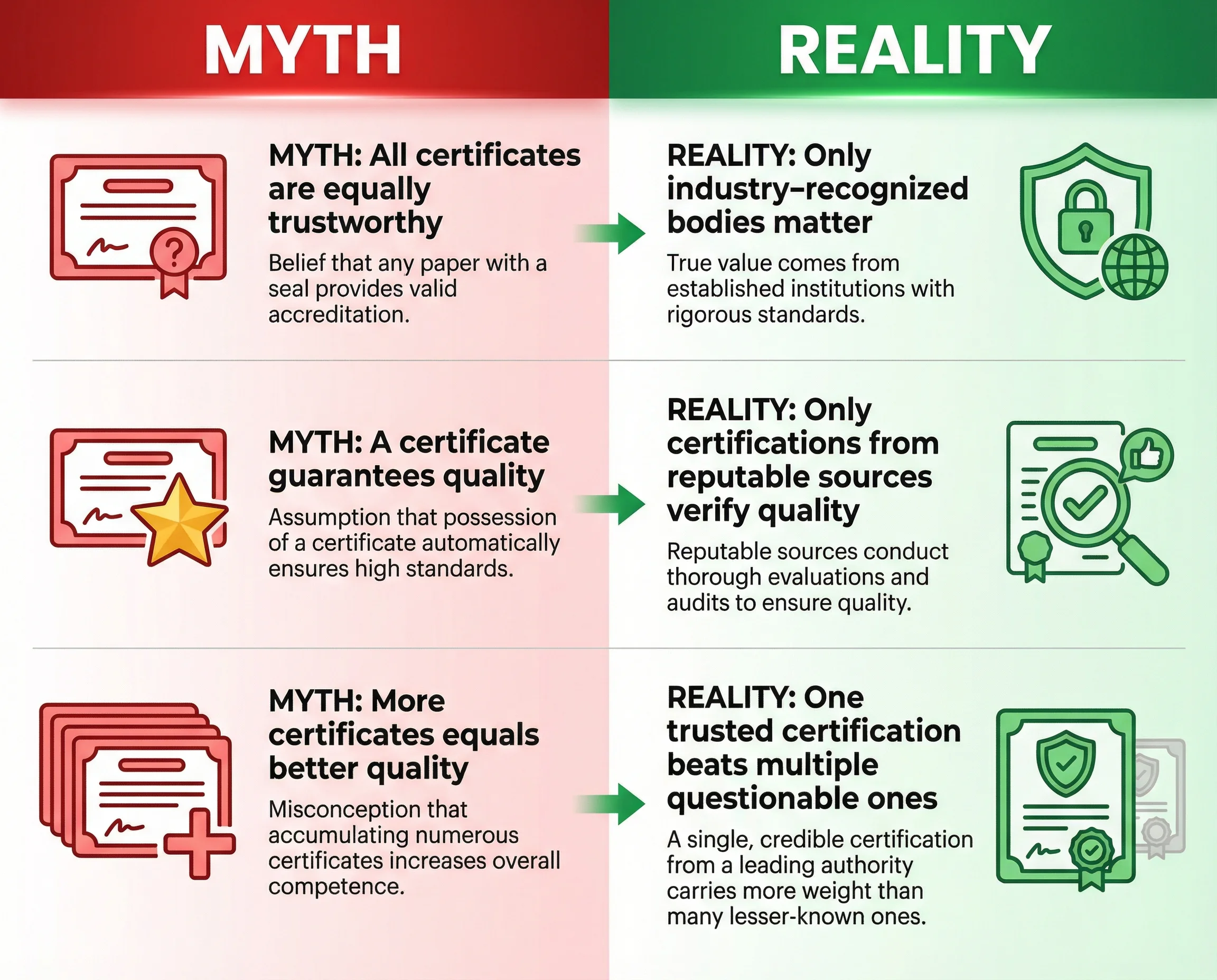Apply the same scrutiny to any certification: Can you verify it independently? Is the organization transparent about their methodology? Are they recognized by industry professionals? If not, be cautious.