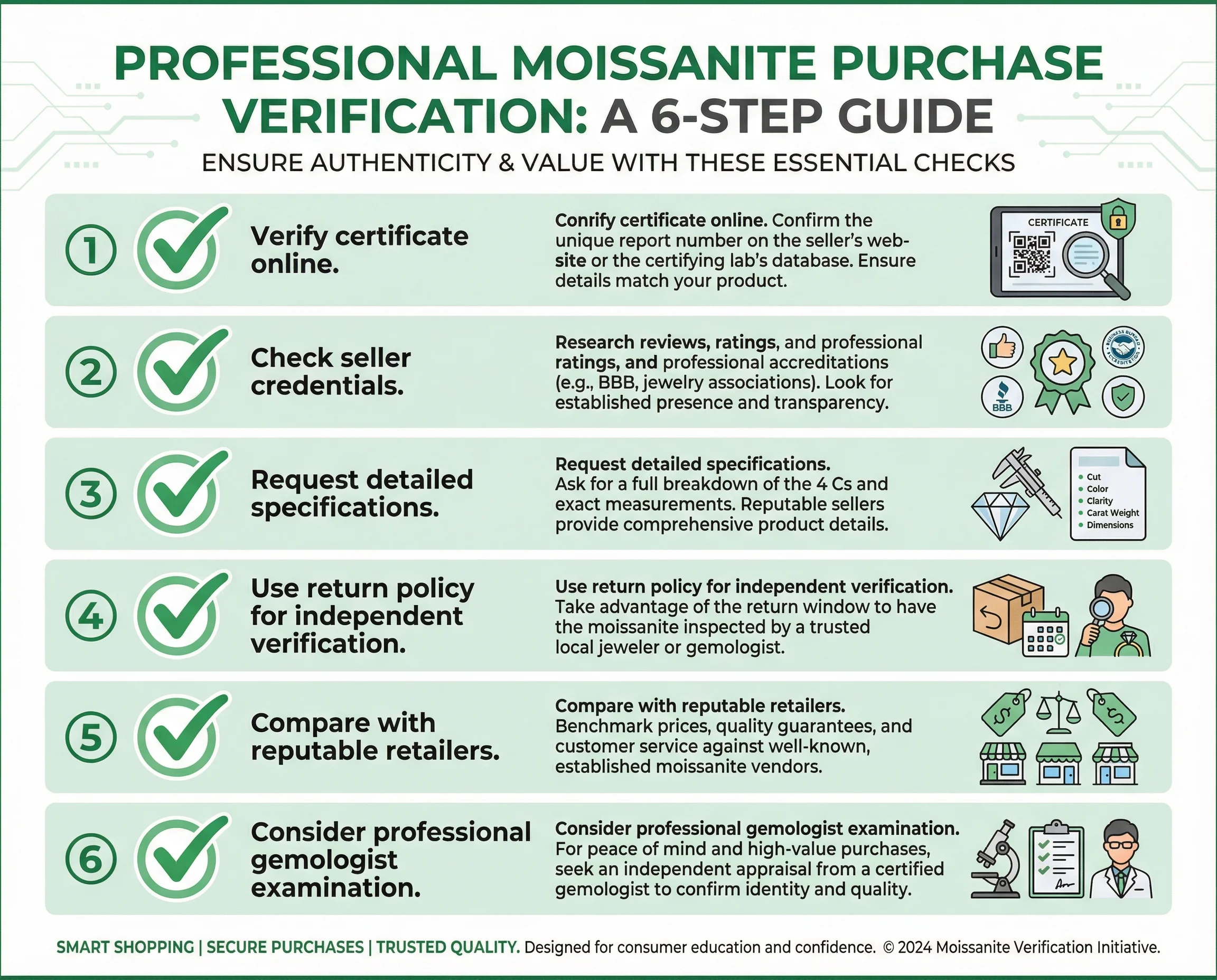 Pro Tip: If purchasing a moissanite ring for an important occasion like an engagement, consider having it examined by a local independent gemologist. The small fee (usually $50-100) provides peace of mind and ensures you got what you paid for.