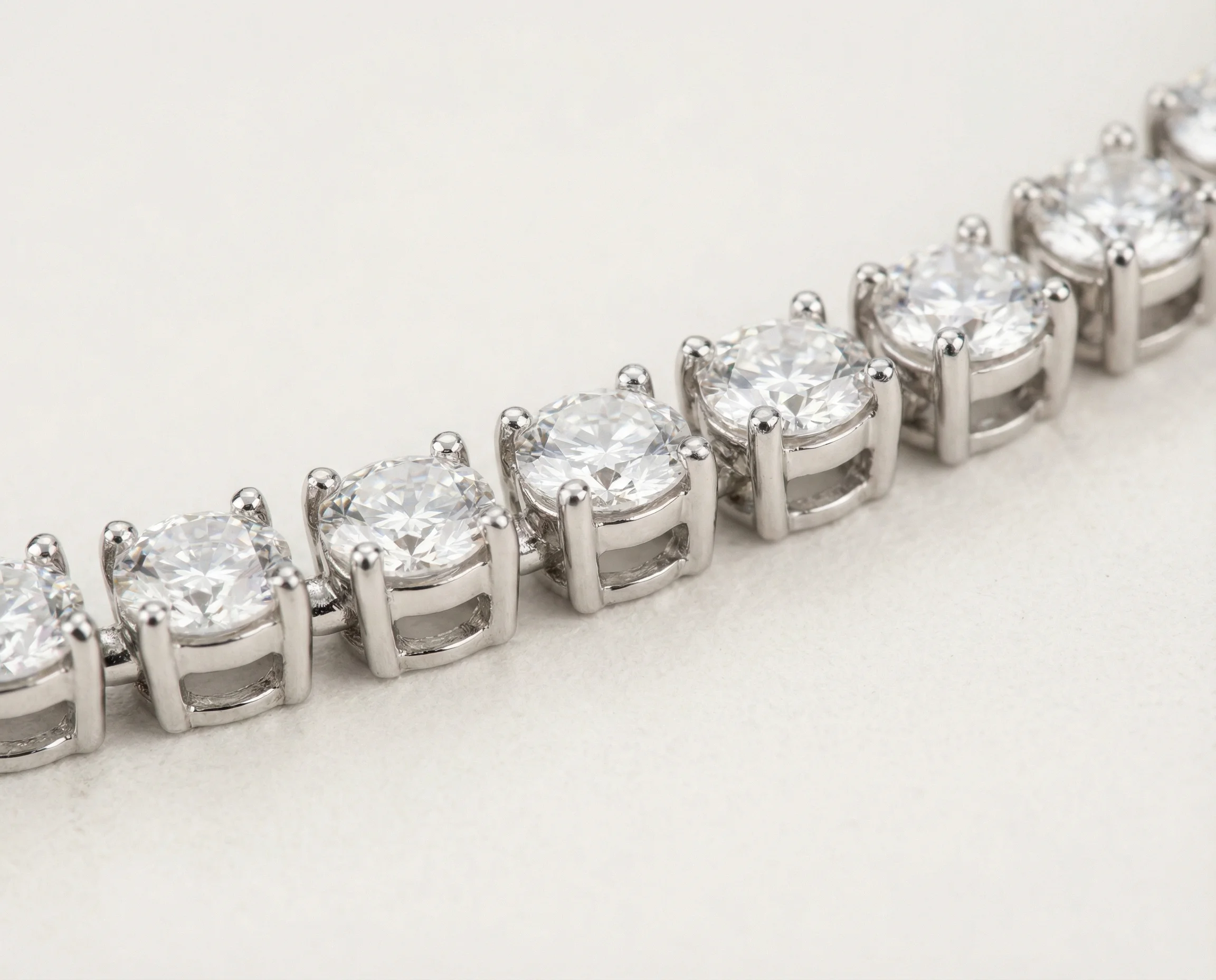 To the naked eye, most people cannot distinguish moissanite from diamond. The key difference—moissanite's increased fire (rainbow flashes)—is often seen as a positive, making the bracelet even more eye-catching than diamond equivalents.