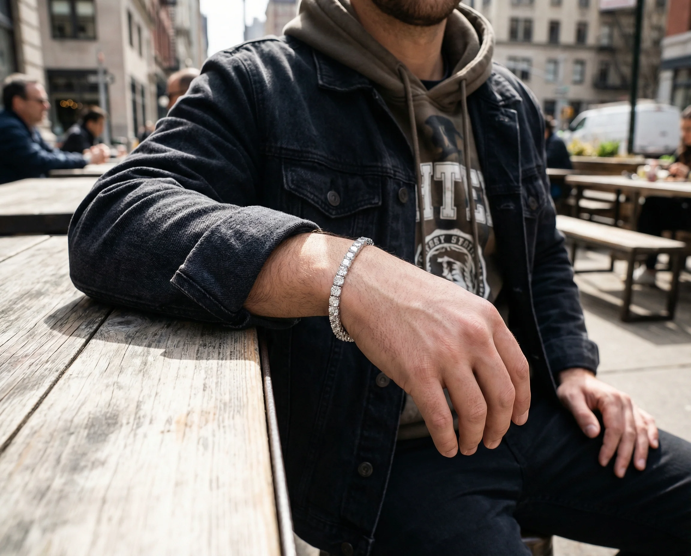 Absolutely. Tennis bracelets have become increasingly popular in men's fashion. For masculine styling: