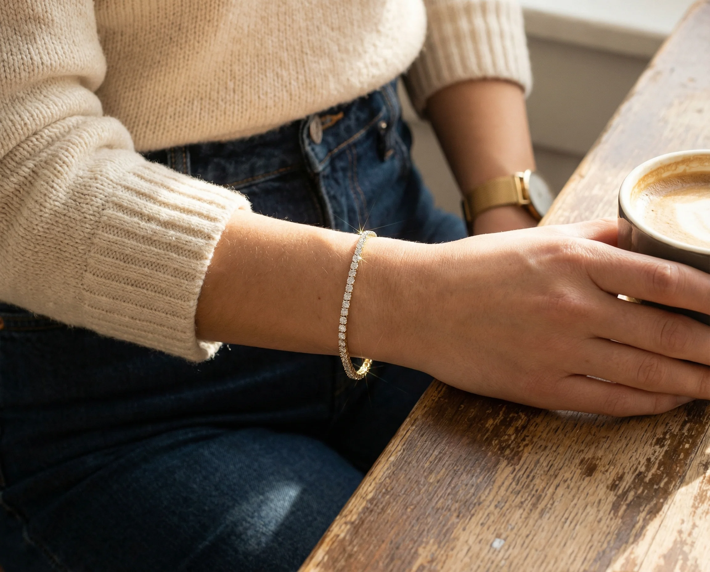 3mm is the most popular size for women's tennis bracelets. It's substantial enough to sparkle but subtle enough for daily wear.