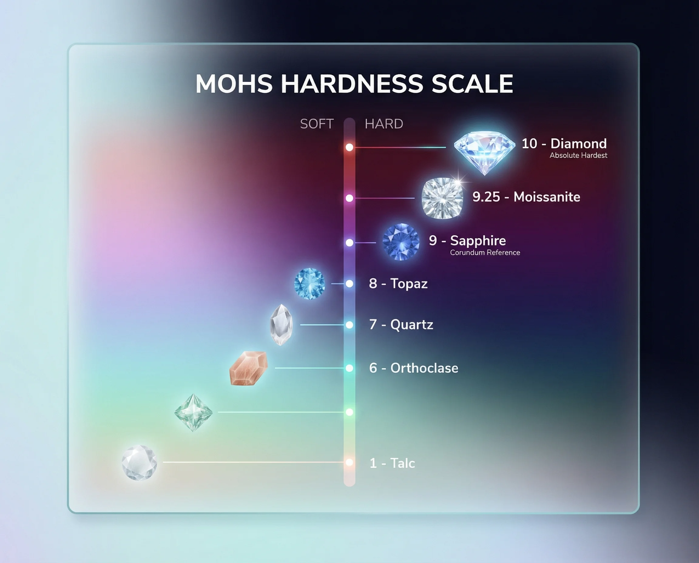 At 9.25 on the Mohs scale, moissanite is highly resistant to scratching. Only diamond and a few other extremely rare materials (like sapphire at 9.0) can scratch it. In everyday wear, moissanite is just as durable as diamond.