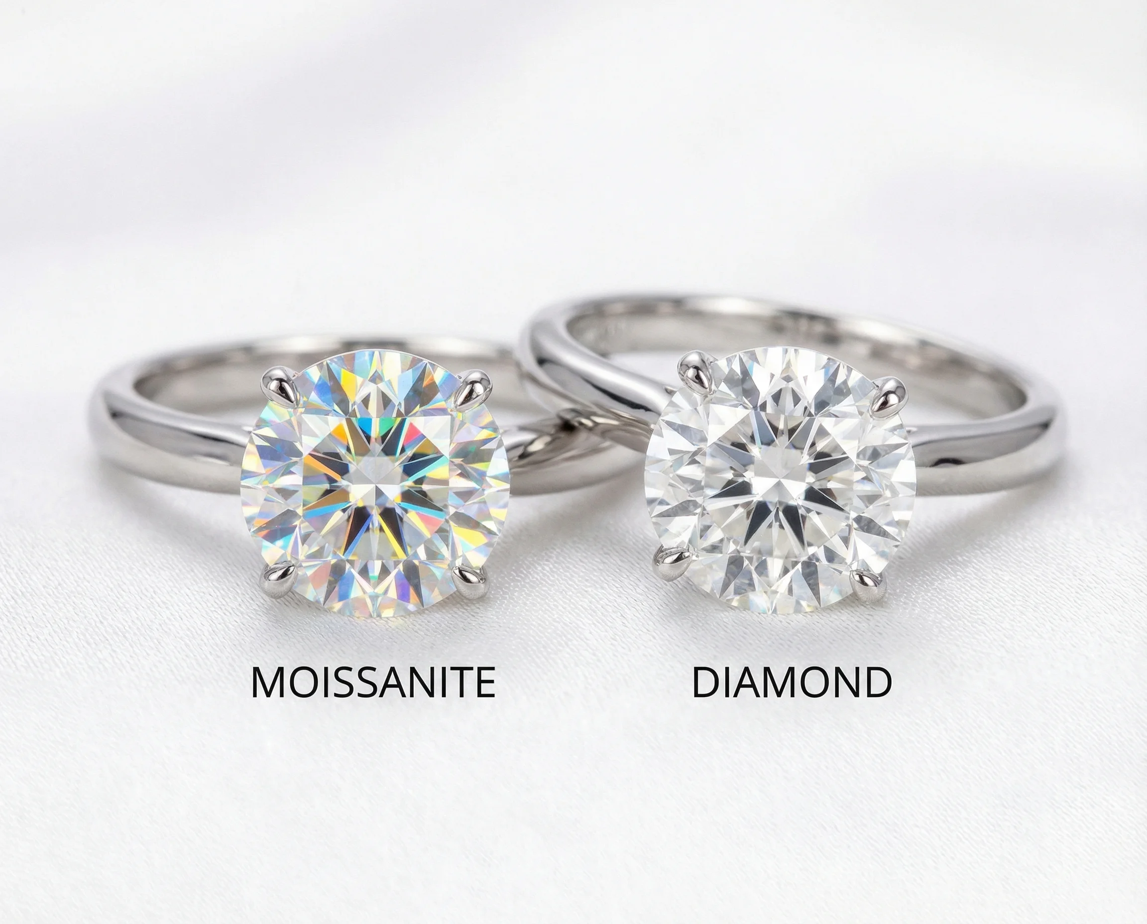 To the naked eye, moissanite and diamond look nearly identical. Even experienced jewelers often need specialized equipment (like a thermal conductivity tester) to distinguish them with certainty. In our showroom tests, 9 out of 10 customers couldn't identify which was which without magnification.